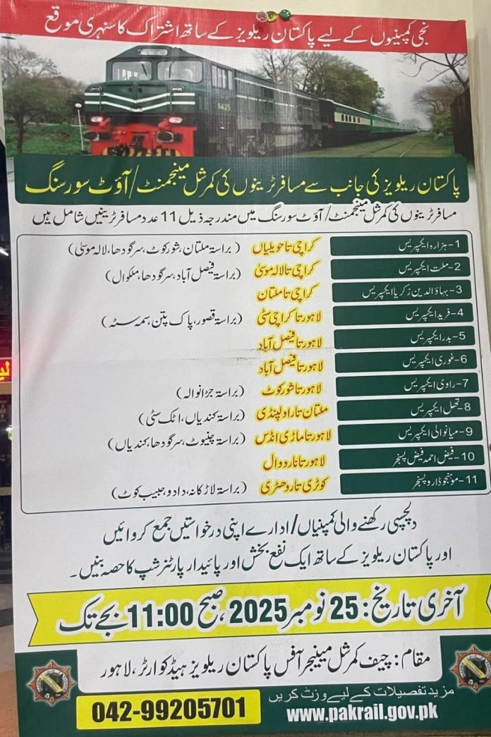 راولپنڈی (ٹی این ایس) پاکستان ریلوے نے 11 ٹرینیں پرائیوٹ کمپنی کو دینے کا فیصلہ کیا ہے