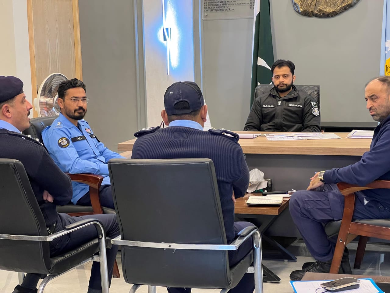 اسلام آباد (ٹی این ایس) ایس ایس پی آپریشنز قاضی علی رضا کی اتوار کو میٹنگ ،ایس پی ڈولفن/نڈیسٹریل ایریا زون خالد محموداعوان ،اے ایس پی سیکرٹریٹ، ایس ایچ او سیکرٹریٹ اور ایس ایچ او کوہسار کی شرکت،میٹنگ میں جرائم پیشہ عناصر کے خلاف موثر کارروائیاں، امن و امان قائم رکھنے گشت کو موثر اور بامقصد بنانے کی ہدایات دیں۔