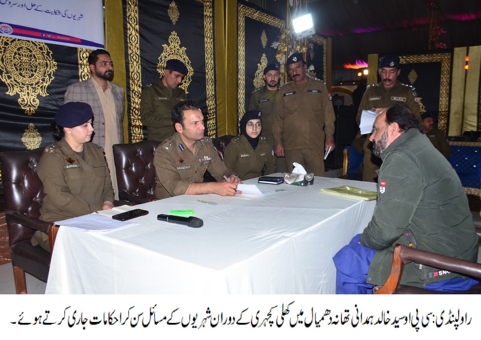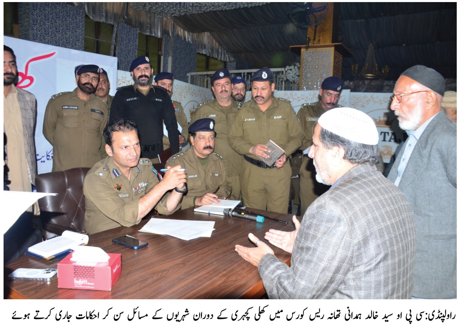 راولپنڈی (ٹی این ایس) وزیر اعلیٰ پنجاب کے ویژن کے مطابق سی پی او سید خالد ہمدانی کی تھانہ دھمیال اور تھانہ ریس کورس میں کھلی کچہری، ایس ایس پی انوسٹی گیشن،ڈویژنل ایس پیز، ایس ڈی پی اوز، ایس ایچ اوز اور تفتیشی افسران بھی موجود تھے، کھلی کچہری میں سول سوسائٹی، امن کمیٹی، انجمن تاجران سمیت شہریوں کی کثیر تعداد میں شرکت، سی پی او نے شہریوں کے مسائل سنے اور ان کے حل کے لیے موقعہ پر احکامات جاری کیے، سی پی او نے تھانہ پیرودھائی میں تعینات ا ے ایس آئی نور خان کو ناقص تفتیش پر معطل کر دیا، تھانہ دھمیال کے ایریا میں ریڑھی اور رکشوں پر لاؤڈ سپیکر کا استعمال کرنے والے افراد کے خلاف کارروائی کا حکم، شہریوں کی جانب سے جرائم پر موثر کنٹرول، سٹریٹ کرائم اور منشیات کے ناسور کے خلاف کریک ڈاؤن پر راولپنڈی پولیس کی کارکردگی کو سراہا گیا، پچھلی کھلی کچہری میں درخواست دی تھی میرے بیٹے کے قاتل کو کیفر کردار تک پہنچایا گیا، انصاف کی فراہمی پر شکر گزار ہوں، سی پی او اور ایس ایچ او دھمیال کا شکریہ، شہری، وزیر اعلیٰ پنجاب کی ہدایات کی روشنی میں شہریوں کے جان و مال کا تحفظ اور سہولیات کی فراہمی اوّلین ترجیح ہے، سی پی او سید خالد ہمدانی۔ تفصیلات کے مطابق وزیر اعلیٰ پنجاب کے ویژن کے مطابق سی پی او سید خالد ہمدانی کی تھانہ دھمیال اور تھانہ ریس کورس میں کھلی کچہری کا انعقاد، ایس ایس پی انوسٹی گیشن،ڈویژنل ایس پیز، ایس ڈی پی اوز، ایس ایچ اوز اور تفتیشی افسران بھی موجود تھے، کھلی کچہری میں سول سوسائٹی، امن کمیٹی، انجمن تاجران سمیت شہریوں نے کثیر تعداد میں شرکت کی، سی پی او نے شہریوں کے مسائل سنے اور ان کے حل کے لیے موقعہ پر احکامات جاری کیے، سی پی او نے تھانہ پیرودھائی میں تعینات ا ے ایس آئی نور خان کو ناقص تفتیش پر معطل کر دیا، سی پی او نے تھانہ دھمیال کے ایریا میں ریڑھی اور رکشوں پر لاؤڈ سپیکر کا استعمال کرنے والے افراد کے خلاف کارروائی کا حکم دیا، شہریوں کی جانب سے جرائم پر موثر کنٹرول، سٹریٹ کرائم اور منشیات کے ناسور کے خلاف کریک ڈاؤن پر راولپنڈی پولیس کی کارکردگی کو سراہا گیا،کھلی کچہری کے دوران ایک شہری نے کہا کہ پچھلی کھلی کچہری میں درخواست دی تھی میرے بیٹے کے قاتل کو کیفر کردار تک پہنچایا گیا، انصاف کی فراہمی پر شکر گزار ہوں، سی پی او اور ایس ایچ او دھمیال کا شکریہ ادا کرتا ہوں، سی پی او سید خالد ہمدانی کا کہنا تھا کہ سروس ڈیلیوری، میرٹ اور قانون کی بالا دستی کو ہر صورت یقینی بنایا جائے گا، شہریوں کے جان و مال کا تحفظ اور سہولیات کی فراہمی اولین ترجیح ہے، وزیر اعلیٰ پنجاب کی ہدایات کی روشنی میں شہریوں کے جان و مال کا تحفظ اور سہولیات کی فراہمی اوّلین ترجیح ہے۔