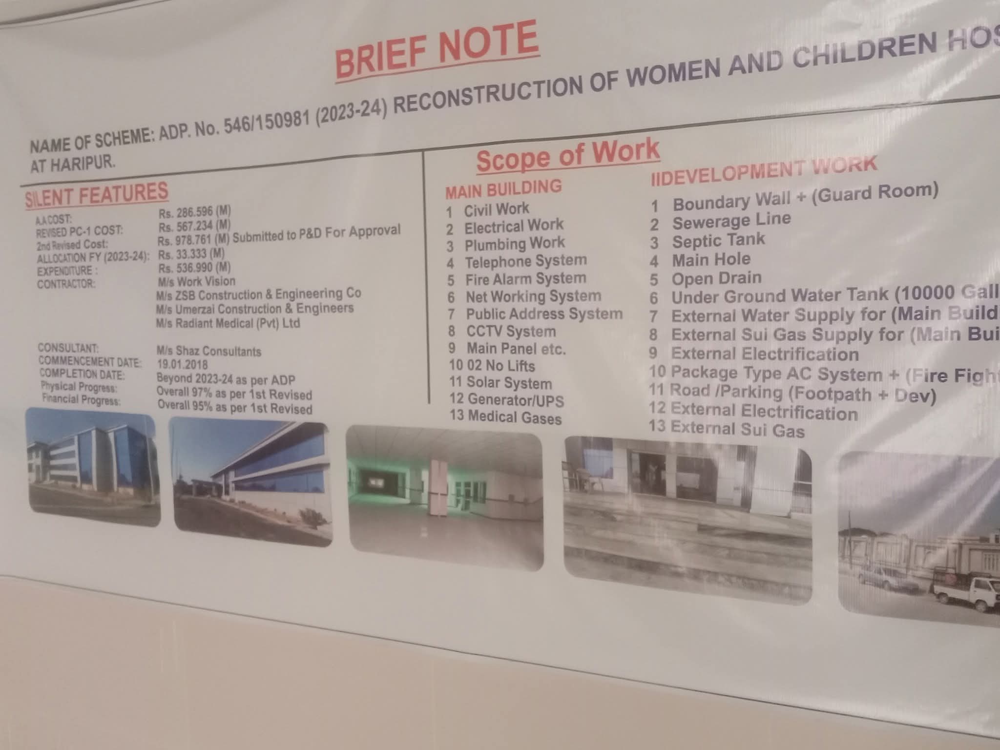 چیف سیکرٹری نے ڈپٹی کمشنر ہری پور کو ہدایت کی کہ جمعرات کو تمام متعلقہ محکموں کا اجلاس طلب کر کے زیرِ تعمیر ویمن اینڈ چلڈرن ہسپتال کی فوری تکمیل کے حوالے سے جامع رپورٹ تیار کر کے ان کے دفتربجمع کروائی جائے، تاکہ منصوبے کو مقررہ مدت میں مکمل کیا جا سکے۔
