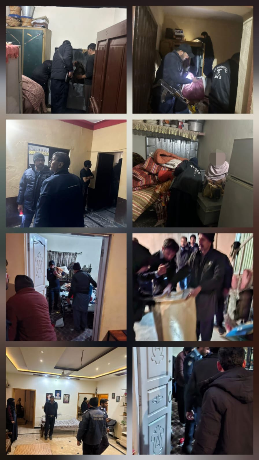 قاضی علی رضا کی سپر ویڑ ن میں ایس پی رورل زون کی زیرنگرانی تھانہ پھلگر اں کے مختلف علاقوں میں گرینڈ سرچ اورکومنگ آپریشن کیا گیا،سرچ آپریشن کے دوران60 افراد،52 گھروں،چھ دکا نوں،16 موٹر سائیکلوں اورپا نچ گا ڑ یو ں کو چیک کیا جبکہ جانچ پڑتال کے لئے چار مشکوک افراد کوتھانہ منتقل کیا گیا،ایس ایس پی آ پر یشنز اسلام آ باد قاضی علی رضانے کہا کہ سرچ آپریشن کا مقصد جرائم پیشہ عناصر کے گرد گھیرا تنگ کرنااور شہر بھرمیں سکیورٹی کو موثر بنانا ہے