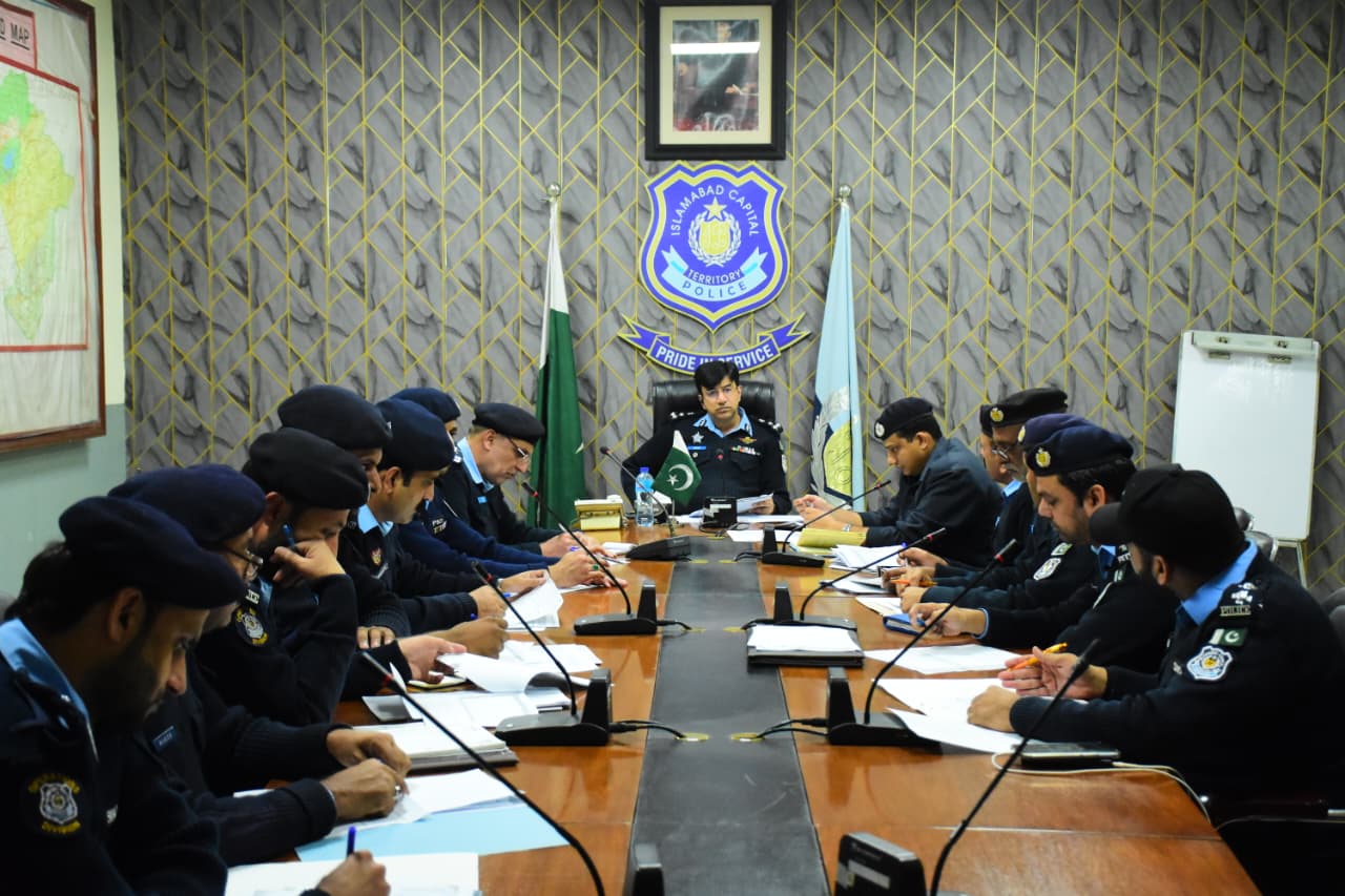 اسلام آباد (ٹی این ایس) ڈی آئی جی اسلام آباد محمد جواد طارق کی زیر صدارت کرائم کے حوالے سے اہم اجلاس۔