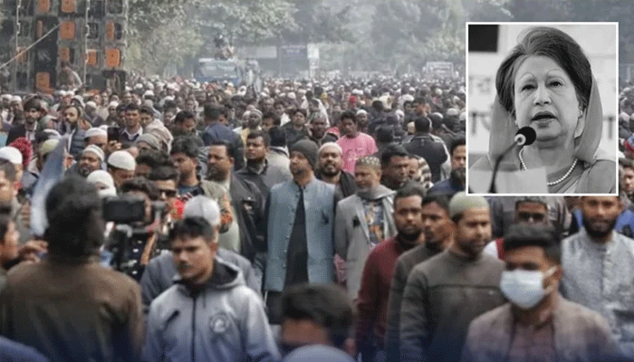 نماز جنازہ میں عبوری حکومت کے سربراہ محمد یونس، بنگلہ دیش کے صدر محمد شہاب الدین سمیت ہزاروں کی تعداد میں لوگ شریک ہوئے، سپیکر قومی اسمبلی سردار ایاز صادق نے پاکستان کی نمائندگی کی، مالدیپ، بھوٹان، نیپال، سری لنکن حکام کا وفد بھی تعزیت کیلئے بنگلہ دیش میں موجود ہے۔