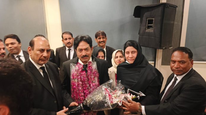 راولپنڈی (ٹی این ایس) سابق صدارتی امیدوار اسلامی جمہوریہ پاکستان اصغر علی مبارک راولپنڈی ڈسٹرکٹ بار ایسوسی ایشن کے الیکشن میں کامیابی پر نومنتخب صدر طارق محمود ساجد اعوان ، سیکرٹری جنرل قمر الحق نیازی ، نائب صدر شازیہ یاسمین ہاشمی شانزے جوائنٹ سیکرٹری احسن سلیم منج،فنانس سیکرٹری عبدالقدوس چوہدری اور دیگر کو گلدستہ پیش کررہے ہیں