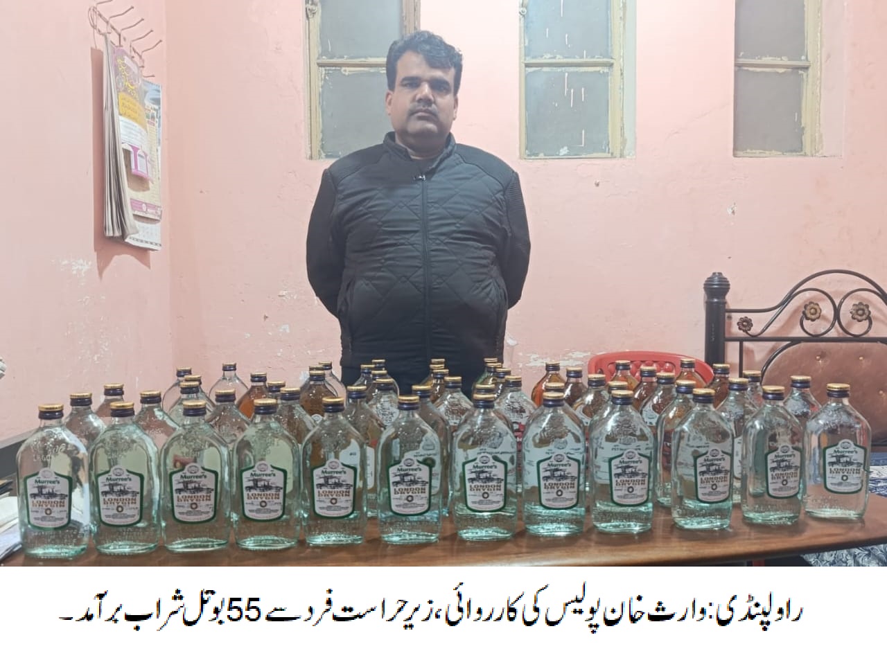 راولپنڈی (ٹی این ایس) ایس ایچ او تھانہ وارث خان راجہ تصدق کی سربراهی میں پولیس ٹیم کی کارروائی، شراب سپلائر گرفتار،55بوتل شراب برآمد۔ تفصیلات کے مطابق وارث خان پولیس نے کارروائی کرتے ہوئے شراب سپلائر کو گرفتار کرلیا، زیرحراست شراب سپلائر سے55بوتل شراب برآمدہوئی، وارث خان پولیس نے مقدمہ درج کرکے گرفتارکرلیا،ایس پی راول سعد ارشد کاکہنا تھا کہ زیرحراست فرد کوٹھوس شواہد کے ساتھ چالان عدالت عدالت کیا جائے گا،منشیات کے ناسور کے خاتمے کے لیے تمام اقدامات اٹھائے جا رہے ہیں۔