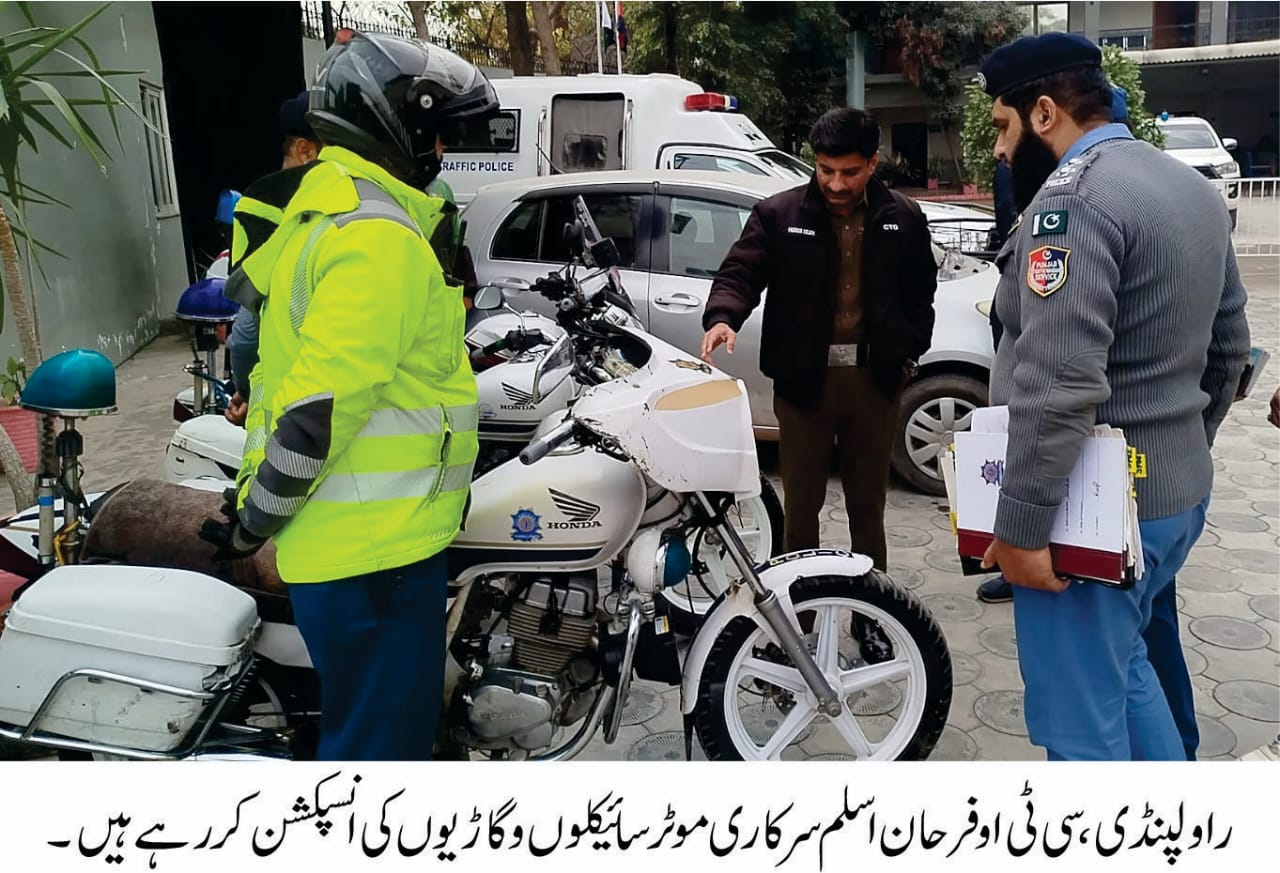 راولپنڈی (ٹی این ایس) ٹریفک ہیڈ کواٹر میں سرکاری لفٹرز، گاڑیوں و موٹر سائیکلوں کی انسپکشن،ڈی ایس پی ٹریفک ہیڈ کواٹرسمیت، ایم ٹی او ٹریفک سمیت انچارجز موقع پر موجود تھے۔مکینیکلی طور پر درست اور صاف ستھری گاڑی و موٹر سائیکل رکھنے پر ڈرائیورز کو شاباش۔ تفصیلات کے مطابق چیف ٹریفک آفیسر راولپنڈی فرحا ن اسلم نے ٹریفک ہیڈ کواٹر میں سرکاری لفٹرز، گاڑیوں وموٹر سائیکلوں کی انسپکشن کی اس موقع پر ایم ٹی او ٹریفک،لفٹر آپریٹرز،ڈرائیورز سمیت انچارجز بھی موقع پر موجود تھے۔ ایم ٹی او ٹریفک، انچارج لفٹر اور ڈی او لاجسٹکس نے سی ٹی او راولپنڈی کو گاڑیوں وموٹر سائیکلوں کی انسپکشن کروائی۔انھوں نے گاڑیوں کے الیکٹرانک سسٹم اور انجن آئل کو بھی چیک کیا۔دوران چیکنگ مکینیکلی طور پر درست اور صاف ستھری گاڑیاں و موٹر سائیکل رکھنے پر ڈرائیورز کو شاباش دی۔انھوں نے ایم ٹی او کو ہدایات جاری کیں کہ وہ ڈرائیورز کو پابند کریں کہ وہ سرکاری گاڑیوں و موٹر سائیکلوں کے انجن آئل کووقت پر تبدیل کریں اور انھیں مکینیکلی درست رکھیں۔اس موقع پر انکا کہنا تھا کہ ٹریفک پولیس کے تمام افسران و جوان دوران ڈیوٹی دیانت داری، خدمت اور محنت کے اصولوں کو اپنے لیے مشعل راہ بناتے ہوئے اپنے فرائض کی ادائیگی کو سر انجا م دیں۔دوران ڈیوٹی نامساعد حالات میں پروفیشنل طرز عمل اپنانے والے افسران و جوان محکمہ پولیس کا فخر ہیں۔میرے لیے ڈرائیور سے لے کر انسپکٹر تک ہر جوان آفیسر جیسا ہے