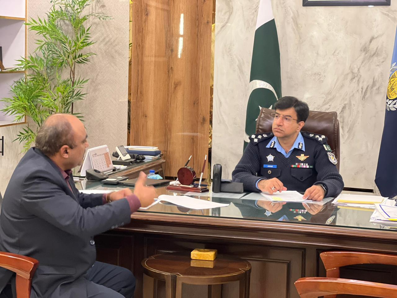 ڈی آئی جی اسلام آبادمحمد جواد طارق نے اپنے دفتر میں کھلی کچہری کے دوران شہریوں کے مسائل سنے،انہوں نے افسران کو شہریوں کے مسائل کے فوری حل کے احکامات جاری کئے،شہریوں کے مسائل کا میرٹ پر فوری حل ہماری اولین ترجیح ہے۔
