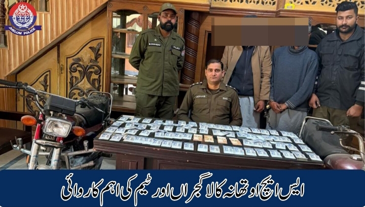 جہلم (ٹی این ایس) ایس ایچ او تھانہ کالا گجراں زوہیب شاہ کی سربراهی میں پولیس ٹیم کی اہم کاروائی، چوری اور موٹر سائیکل چوری کی متعدد وارداتوں میں ملوث ساقی گینگ کے 02ملزمان گرفتار، چوری شدہ موٹر سائیکل ،اور نقدی برآمد