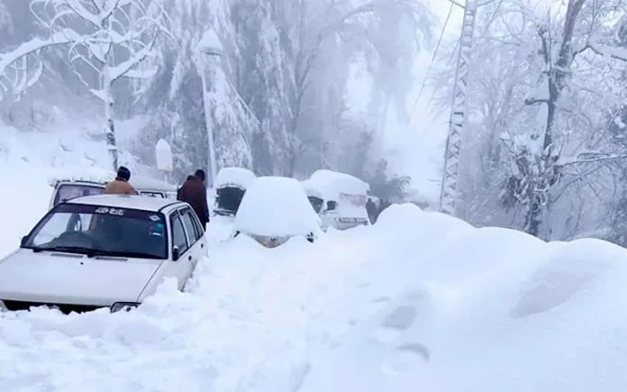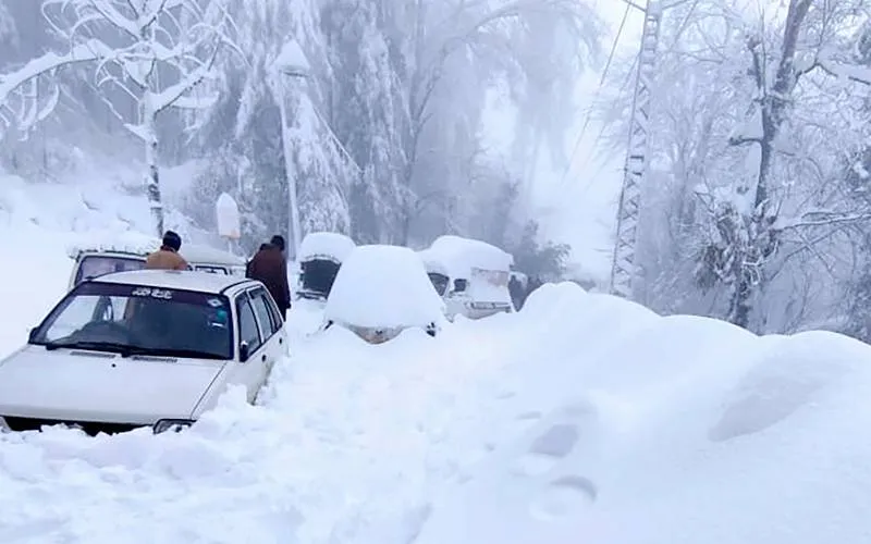 راولپنڈی (ٹی این ایس) مری میں گزشتہ 15گھنٹوں سے زائد برفباری کاسلسلہ جاری، شہریوں اور سیاحوں کے محفوظ انخلاء کے لئے ریسکیو آپریشنز جاری، سیاحوں کیلئے ٹریول ایڈوائزری جاری، حدِ نگاہ صفرہونے کے باعث شہری مری کیجانب سفر سے گریزکریں۔برفانی طوفان کے پیشِ نظر مری میں روڈکلیئرنس تک مزید گاڑیوں کےداخلے پر مکمل پابندی عائدکردی گئی ہے۔شہریوں اورسیاحوں سے اپیل ہے کہ خراب موسم کے پیشِ نظرمری کا سفرمؤخر کریں اور احتیاطی تدابیر اختیار کریں۔مری روڈ پر ضلعی وٹریفک پولیس اور ریسکیواہلکار سیاحوں کوبحفاظت نکالنےمیں مصروف ہیں،بھارا کہواور سترہ میل پر رکاوٹیں لگادی گئی ہیں، انسانی جانوں کاتحفظ ہماری اولین ترجیح ہے