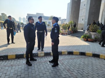اسلام آباد (ٹی این ایس) ایس ایس پی سیکیورٹی کیپٹن (ر) سید ذیشان حیدر نے اسلام آباد ہائی کورٹ کا دورہ کیا، ایس پی جوڈیشل پروٹیکشن یونٹ اقبال خان سے سیکیورٹی ڈیوٹی سے متعلق بریفنگ لی۔ڈیوٹی پر مامور افسران و جوانوں کو مستعدی کے ساتھ فرائض سرانجام دینے اور کسی بھی قسم کی لاپرواہی پر محکمانہ کارروائی عمل میں لانے کے احکامات جاری کی