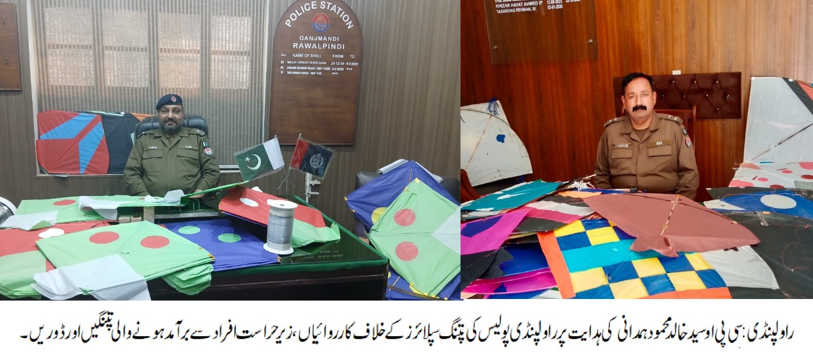 راولپنڈی (ٹی این ایس) دھمیال پولیس نے سوشل میڈیا پر پتنگ بازی اور اسلحہ کی تشہیر کے حوالے سے ویڈیو سامنے آنے پر کاروائی کرتے ہوئے 02 افراد کو گرفتار کر کے پتنگیں اور اسلحہ برامد کر لیا،وارث خان پولیس نے چیک ڈس اونر کے مقدمے میں مطلوب اشتہاری گرفتار کر لیا اشتہاری جون 25 سے وارث خان پولیس کو مطلوب تھا،پتنگ بازی کے خلاف کاروائیوں کے دوران وارث خان پولیس نے 04 افراد کو حراست میں لیکر 225 پتنگیں اور 05 ڈوریں برامد،گنج منڈی پولیس نے 02 افراد کو حراست میں لیکر 50 پتنگیں اور 02 ڈوریں برامد کیں صدر بیرونی پولیس نے 01 فرد کو حراست میں لے کر 25 پتنگیں اور ڈوریں برامد کی،کرایہ داری ایکٹ کی خلاف ورزی پر کاروائی کے دوران سرچ آپریشن کرایہ ایکٹ کی خلاف ورزی پر 09 افراد گرفتار،کاروائیاں وارث خان، نیو ٹاؤن اور ٹیکسلا کے علاقوں میں کی گئیں،منشیات و اسلحہ کے خلاف کریک ڈاؤن میں 02 افراد گرفتار 01 کلوگرام چرس اور اسلحہ معہ ایمونیشن برامد کیا گیا، آر اے بازار پولیس نے 01 فرد کو حراست میں لے کر ایک کلو 400 گرام چرس برآمد کی صادق آباد پولیس نے 01 فرد کو حراست میں لیکر اسلحہ معہ ایمونیشن برآمد کیا زیر حراست افراد کے خلاف الگ الگ مقدمہ درج کر لیا گئے،گداگروں کے خلاف آپریشن میں17روز کے دوران شہر بھر سے 225 پیشہ ور بھکاری گرفتار ہوئے زیر حراست افراد میں 108 مرد 108 عورتیں اور 09 خواجہ سرا شامل ہیں۔۔۔۔۔۔۔۔۔۔۔۔۔۔