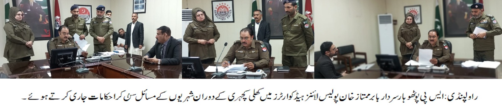 راولپنڈی (ٹی این ایس) (مظہر شاہ)ایس پی پوٹھوہار سردار بابر ممتاز خان کی پولیس لائنز ہیڈکوارٹرز میں کھلی کچہری، ایس پی پوٹھوہار نے شہریوں کی شکایات سن کر ان کے حل کے لیے متعلقہ افسران کو احکامات جاری کیے، مارک کردہ درخواستوں پر دیئے گئے ٹائم فریم کے اندر قانونی کاروائی کو یقینی بنایا جائے، ایس پی پوٹھوہار کی متعلقہ افسران کو ہدایت، شہریوں کے مسائل کے فوری حل میں کسی قسم کی غفلت برداشت نہیں کی جائے گی،ایس پی پوٹھوہار۔تفصیلات کے مطابق ایس پی پوٹھوہارسردار بابر ممتاز خان نے پولیس لائنز ہیڈکوارٹرز میں کھلی کچہری کا انعقاد کیا،ایس پی پوٹھوہار نے شہریوں کی شکایات سن کر ان کے حل کے لیے متعلقہ افسران کو احکامات جاری کیے، مارک کردہ رخواستوں پر دیئے گئے ٹائم فریم کے اندر قانونی کاروائی کو یقینی بنایا جائے،ایس پی پوٹھوہارنے متعلقہ افسران کو ہدایت دیتے ہوئے کہا کہ شہریوں کے مسائل کے فوری حل میں کسی قسم کی غفلت برداشت نہیں کی جائے گی،تھانوں میں شہریوں کے لئے بہترین سروس ڈیلیوری کو ہمہ وقت یقینی بنایا جائے گا، وزیر اعلی پنجاب کے ویژن کے مطابق شہریوں کی جان و مال کے تحفظ اور ان کو سہولیات کی فراہمی اولین ترجیح ہے جس کے لیے تمام اقدامات اٹھائے جا رہے ہیں۔