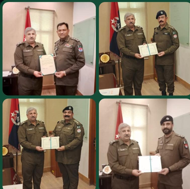 ایس ایس پی انویسٹیگیشن نے ایس ایچ او ریس کورس انسپکٹر محمد جمیل، ایس ایچ او کلر سیداں انسپکٹر عاقب رزاق، ایس ایچ او رتہ امرال انسپکٹر علی حسین، ایس ایچ او مندرہ انسپکٹر تنویر اشرف، ایس ایچ او بنی انسپکٹر طاہرمحمود، ایس ایچ او نصیرآباد سب انسپکٹر خالد یار،ایس ایچ او ویسٹریج سب انسپکٹر آفتاب حسین،سب انسپکٹر محمد خرم، ہیڈکانسٹیبل راشد محمود، ہیڈکانسٹیبل کفیل طارق، ہیڈکانسٹیبل فہد، ہیڈکانسٹیبل شاہد محمود، ہیڈکانسٹیبل ناصر ظہور، ہیڈکانسٹیبل یاسر عباس اور ہیڈکانسٹیبل محمد حنیف کو تعریفی سرٹیفکیٹس دئیے،