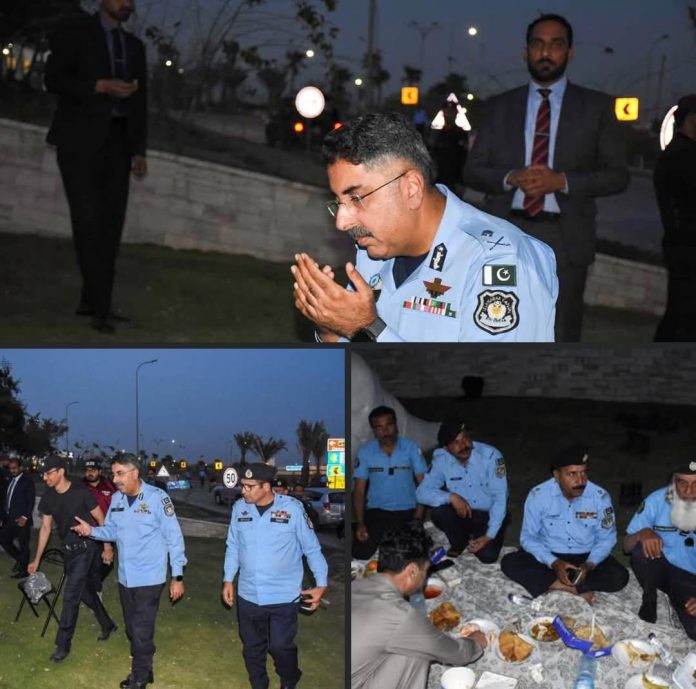 اسلام آباد (ٹی این ایس) آئی جی اسلام آباد سید علی ناصر رضوی نے اپنے پیاروں سے دور شہریوں کی حفاظت اور سہولت کے لئے ناکہ سیونتھ ایونیو پر موجود پولیس افسران کے ہمراہ روزہ افطار کیا اور جوانوں کی حوصلہ افزائی کی۔