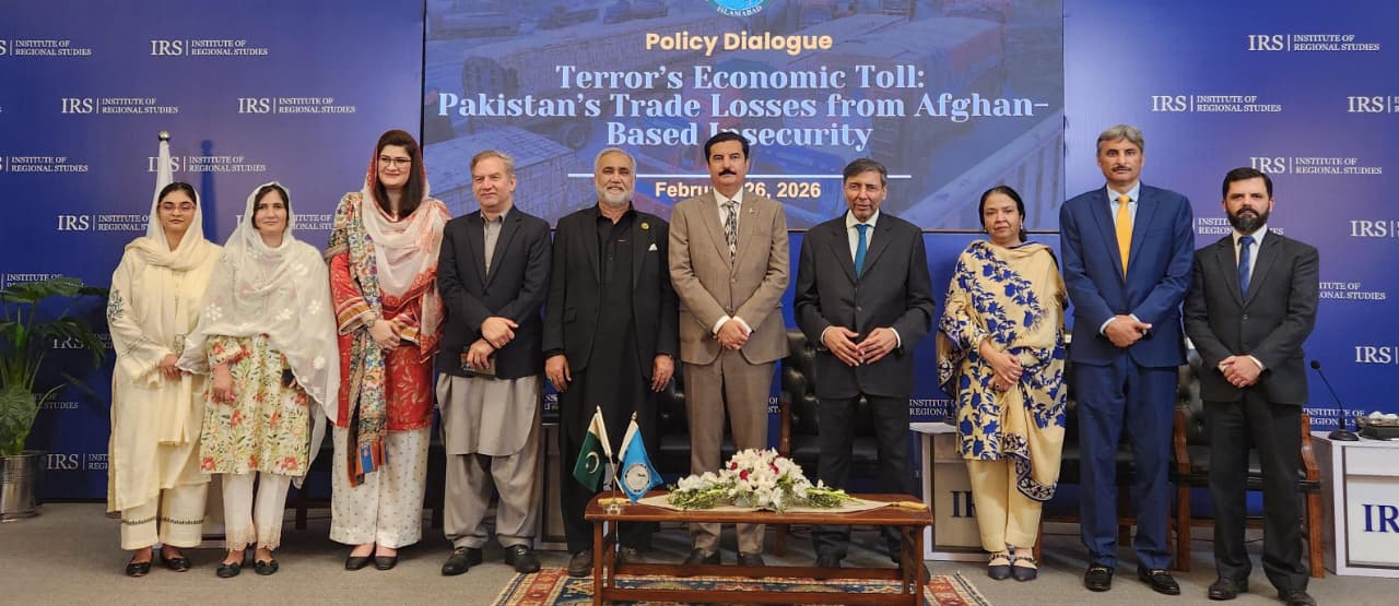 اسلام آباد (ٹی این ایس) : ادارہ برائے علاقائی مطالعات ,انسٹی ٹیوٹ آف ریجنل اسٹڈیز—آئی آر ایس, کے زیرِاہتمام منعقدہ پالیسی مکالمے میں مقررین نے خبردار کیا کہ سرحد پار سے جنم لینے االے سکیورٹی چیلنجز اور سرحدی راستوں کی بار بار بندشیں پاکستان کی تجارت، ٹرانزٹ امکانات اور علاقائی ربط (ریجنل کنیکٹیوِٹی) کے ایجنڈے کو شدید معاشی نقصان پہنچا رہی ہیں، جس کی مالیت اربوں امریکی ڈالر تک پہنچتی ہے۔ “دہشت گردی کی معاشی قیمت: سرحد پار سے درپیش عدمِ تحفظ کے باعث پاکستان کے تجارتی نقصانات” کے عنوان سے یہ مکالمہ اسلام آباد میں منعقد ہوا۔ اس موقع پر صدرِ آئی آر ایس، سفیر جوہر سلیم نے کہا کہ جنوبی ایشیا کو وسطی ایشیا سے جوڑنے والی پاکستان کی جغرافیائی برتری اسی وقت پائیدار معاشی نمو میں ڈھل سکتی ہے جب سرحدی نظم و نسق قابلِ پیش گوئی اور قابلِ اعتماد رہے۔ انہوں نے خصوصاً طورخم اور چمن سمیت کلیدی گزرگاہوں پر تعطل کو سپلائی چین میں خلل، سرمایہ کارانہ اعتماد میں کمی، اور تاجروں کے لیے پاکستان سے ہٹ کر طویل المدت متبادل راستوں کی جانب مستقل رخ کرنے کے خدشات سے جوڑاہے۔ ان کے مطابق تجارتی راہداریاں “یقین اور تسلسل” کی بنیاد پر فعال رہتی ہیں؛ لہٰذا سلامتی اور اقتصادی پالیسی کو باہم مربوط انداز میں آگے بڑھانا ناگزیر ہے۔ تقریب میں گورنر خیبر پختونخوا، جناب فیصل کریم کنڈی نے بطور مہمانِ خصوصی شرکت کی اور شواہد پر مبنی ایسی بحث کے انعقاد پر آئی آر ایس کو سراہا جس میں حکومت، کاروباری طبقے اور ذرائع ابلاغ کے نقطہ ہائے نظر یکجا ہوئے۔ انہوں نے کہا کہ خیبر پختونخوا کو محض ایک “فرنٹ لائن” صوبہ نہیں بلکہ منڈیوں کے مابین ایک پل اور لاجسٹکس، قانونی تجارت اور روزگار کے لیے ایک ممکنہ مرکزی مرکز کے طور پر دیکھا جانا چاہیے۔ انہوں نے زور دیا کہ “محفوظ سرحد کے ساتھ فعال سرحد بھی لازم ہے”، اور وفاق و صوبے کے مابین مضبوط رابطہ کاری، انفراسٹرکچر کی تیاری، اور ایسی پالیسیوں کی ضرورت پر روشنی ڈالی جو سرحدی دباؤ کو معاشی مواقع میں تبدیل کر سکیں۔