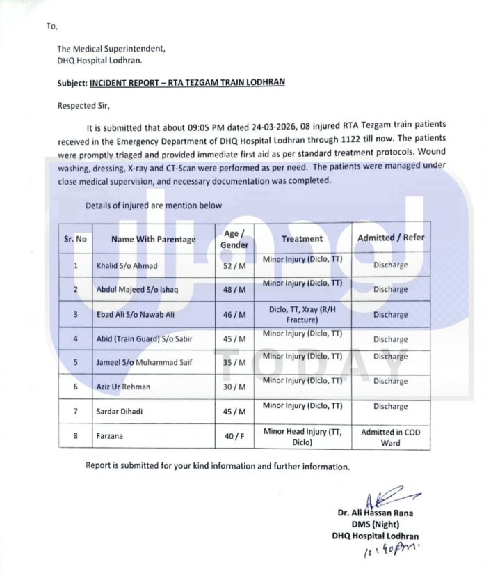 لودھراں (ٹی این ایس) آدم واہن کے قریب تیز گام ایکسپریس حادثے کا شکار
