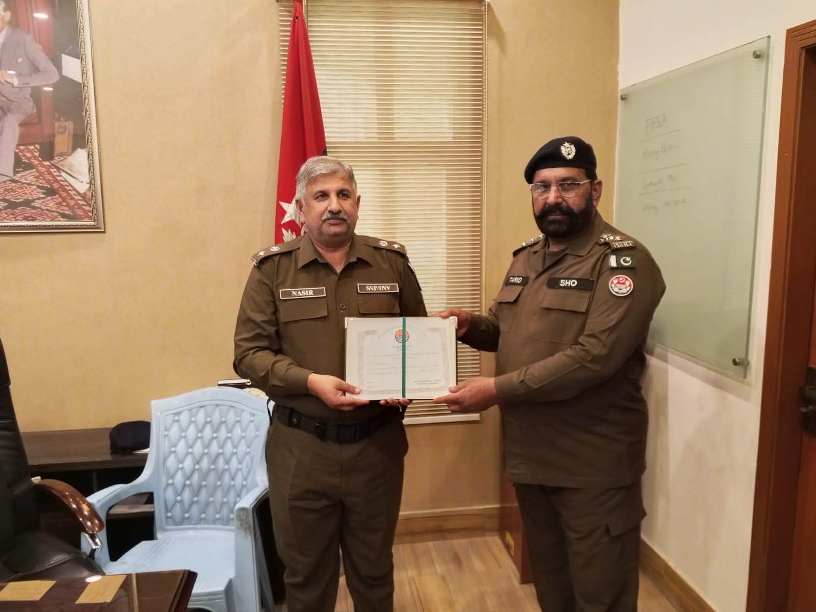 ایس ایس پی انویسٹیگیشن نے ایس ایچ او مندرہ انسپکٹر تنویر اشرف،ایس ایچ او مورگاہ انسپکٹر گلناز بیگم، ایس ایچ او چونترہ انسپکٹر محمد ثاقب عباسی، ایس ایچ او گنجمنڈی انسپکٹر طارق محمود، ایس ایچ او چکری انسپکٹر محمد مسعود، ایس ایچ او رتہ امرال انسپکٹر علی حسین، ایس ایچ او روات انسپکٹر زاہد ظہور، ایس ایچ او چکلالہ انسپکٹر سکندر نواز، ایس ایچ او بنی انسپکٹر طاہر محمود، ایس ایچ او ریس کورس انسپکٹر محمد جمیل،ایس ایچ او پیرودھائی انسپکٹر سید علی عباس ہمدانی،ایس ایچ او ٹیکسلا انسپکٹر سید حامد کاظمی، ایس ایچ او کلرسیداں انسپکٹر عاقب رزاق، ایس ایچ او نیو ٹاؤن انسپکٹر عاطف ستار، انسپکٹر بشرا، ایس ایچ او آراے بازار سب انسپکٹر سجاد احمد، ایس ایچ او سٹی سب انسپکٹر عبدالرحمان،ایس ایچ او واہ کینٹ سب انسپکٹر مظہر حنیف قادری، ایس ایچ او ویسٹریج سب انسپکٹر آفتاب حسین،ایس ایچ او جاتلی سب انسپکٹر جمال نواز،ایس ایچ او صدر واہ سب انسپکٹر آصف اقبال، ایس ایچ او کینٹ سب انسپکٹر سید سبطین الحسن، ایس ایچ او نصیر آباد سب انسپکٹر خالد یار،ایس ایچ او سول لائن سب انسپکٹر محمد ذوالفقار، ایس ایچ او صادق آباد سب انسپکٹر سجاد احمد، ایس ایچ او وارث خان سب انسپکٹر تصدق رحمان،سب انسپکٹر ممتاز، اسسٹنٹ سب انسپکٹر یاسر عباس، ہیڈ کانسٹیبل فدا حسین،کانسٹیبل نعیم عباس کو تعریفی سرٹیفکیٹس دئیے،
