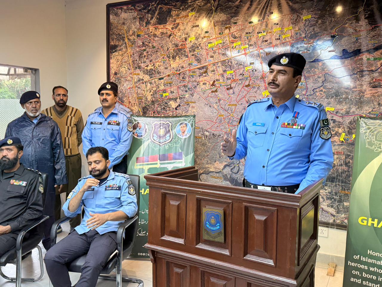 اسلام آباد (ٹی این ایس) اسلام آبادپولیس کے غازیان کے اعزاز میں ریسکیو 15 فیلڈ آفس میں (غازی ویک) تقریب کا دوسرا دن۔شہر کو پر امن بنا کر پولیس فورس کا وقار بلند کرنے والے ہمارے ماتھے کا جھومر ہیں، ہم اپنے غازیان کو ہمیشہ یاد رکھیں گے، دہشت گردی کی جنگ لڑنے والوں کو دی جانے والی مراعات ان کی قربانی کا نعم البدل نہیں۔ایس ایس پی آپریشنز اسلام آباد ،تفصیلا ت کے مطا بق انسپکٹر جنرل آف پولیس اسلام آباد سید علی ناصررضوی کے خصوصی احکامات کی روشنی میں اسلام آبادپولیس کے غازیان کے اعزاز میں ریسکیو 15 فیلڈ آفس میں (غازی ویک) کے دوسرے دن تقریب کا انعقادکیا ، تقریب میں ایس ایس پی آپریشنز اسلام آباد قاضی علی رضا اور اسلام آباد پولیس کے غازیان نے شرکت کی،اس موقع پر تقریب سے خطاب کرتے ہوئے ایس ایس پی آپریشنز اسلام آباد نے کہاکہ آج کا دن ہمارے لیے صرف باعث فخر باعث شکر نہیں بلکہ تجدید عہد بھی ہے،اپنی بہادری، فرض شناسی، قربانی کے جذبے سے سر شار جوانوں کو خراج تحسین پیش کرتاہوں،انہوں نے کہا کہ اسلام آباد کو پر امن شہر بنا کر پولیس فورس کا وقار بلند کرنے والے ہمارے ماتھے کا جھومر ہیں، ملک و قوم کی خدمت کے دوران قربانی کا جذبہ کسی بھی قوم کے بہادر سپوتوں کو نصیب ہوتا ہے، انہوں نے مزید کہا کہ ہم اپنے غازیان کو ہمیشہ یاد رکھیں گے، ملک و قوم کے لیے قربانی دینے والوں کے خاندان بھی باعث احترام ہیں،انہوں نے کہا دہشت گردی کی جنگ لڑنے والوں کو دی جانے والی مراعات ان کی قربانی کا نعم البدل نہیں، اپنے آج کو دوسرے کے کل کے لیے قربان کرنے والوں کو تاریخ ہمیشہ یاد رکھتی ہے،تقریب کے دوران غازیان نے اپنے خیالات کا اظہار کیااور عزت افزائی پر آئی جی اسلام آباد اور انکی ٹیم کی خصوصی کاوشوں کا بھی سراہ
