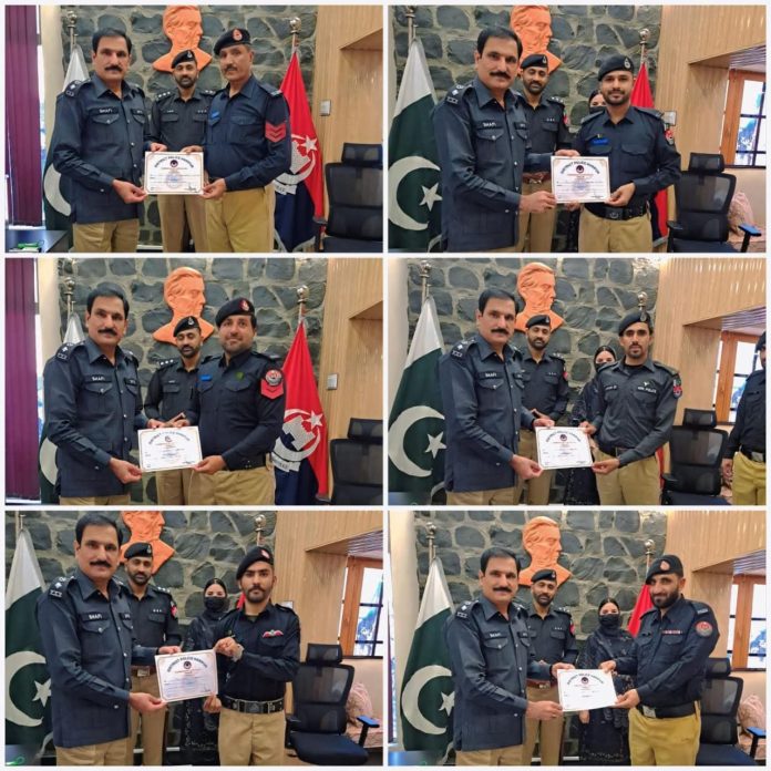 ہری پور (ٹی این ایس) ڈی پی او ہری پور شفیع اللہ گنڈاپور نے ڈی ایس پی سرکل صدر محمد عارف کی زیر نگرانی آن لائن ایف آئی آر میں ضلع بھر میں نمایاں کارکردگی کا مظاہرہ کرنے والے سرکل صدر اور تھانہ سٹی ، تھانہ سرائے صالح،تھانہ غازی اور تھانہ ناڑہ آمازئی کے پولیس افسران ،جوانوں اور لیڈی پولیس کو تعریفی سرٹیفکیٹ دیے ۔