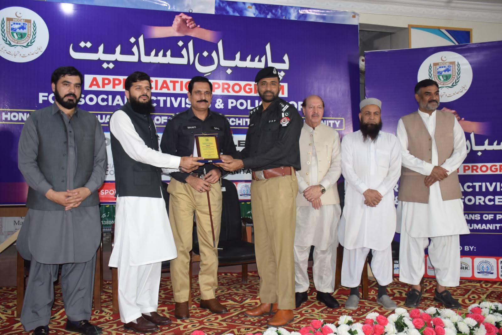 ہری پور (ٹی این ایس) ہری پور چیمبر آف کامرس اینڈ انڈسٹری کے زیر اہتمام رمضان المبارک کے مقدس مہینے میں سپیشل ڈیوٹی انجام دینے والے پولیس افسران ، اہلکاروں، ریسکیو اور فلاحی تنظیموں کے کارکنان کے اعزاز میں پاسبان انسانیت تقریب کا انعقاد