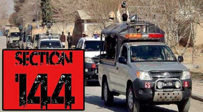 کوئٹہ (ٹی این ایس)(آئی پی ایس )حکومت بلوچستان نے سکیورٹی خدشات کے پیش نظر صوبے میں دفعہ 144 نافذ کردی۔اعلامیہ کے مطابق بلوچستان میں 15 روز کے لئے دفعہ 144 نافذ کی گئی ہے، دفعہ 144 کے دوران اسلحے کی نمائش، ڈبل سواری، پانچ سے زائد افراد کے اجتماع اور منہ ڈھانپنے پر پابندی عائد کی گئی۔اعلامیہ میں انتظامیہ...