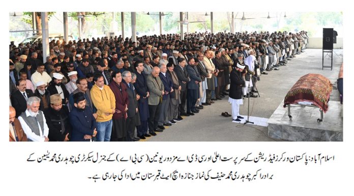 اسلام آباد (ٹی این ایس) پاکستان ورکرزفیڈریشن کے سرپرست اعلیٰ اور سی ڈی اے مزدور یونین(سی بی اے) کے جنرل سیکرٹری چوہدری محمد یٰسین کے برادراکبرچوہدری محمد حنیف سابق...