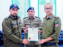 Islamabad (TNS) DPO Khanewal Awards Certificate of Appreciation to SHO Arslan...